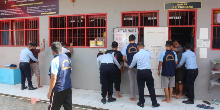 Razia dan penggeledahan dimulai pada pukul 08.45 wita hingga pukul 09.45 wita, razia dan penggeledahan kali ini menyasar pada blok A yang mayoritas dihuni WBP dengan perkara kriminal dimana yang menjadi titik pusat kegiatan adalah kamar hunian Enggang yang diisi hampir 90 orang WBP.